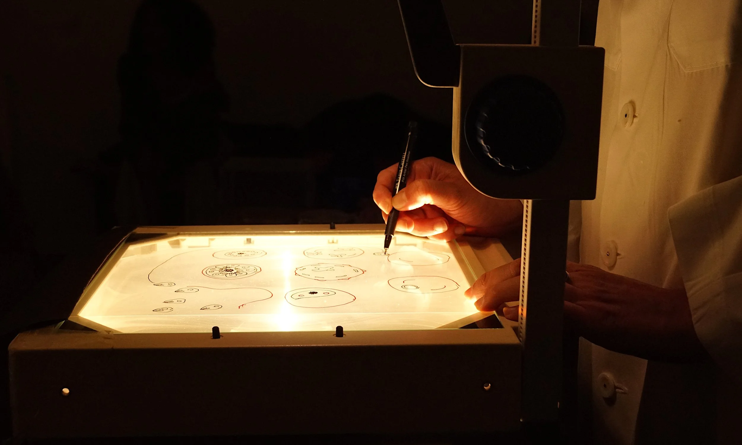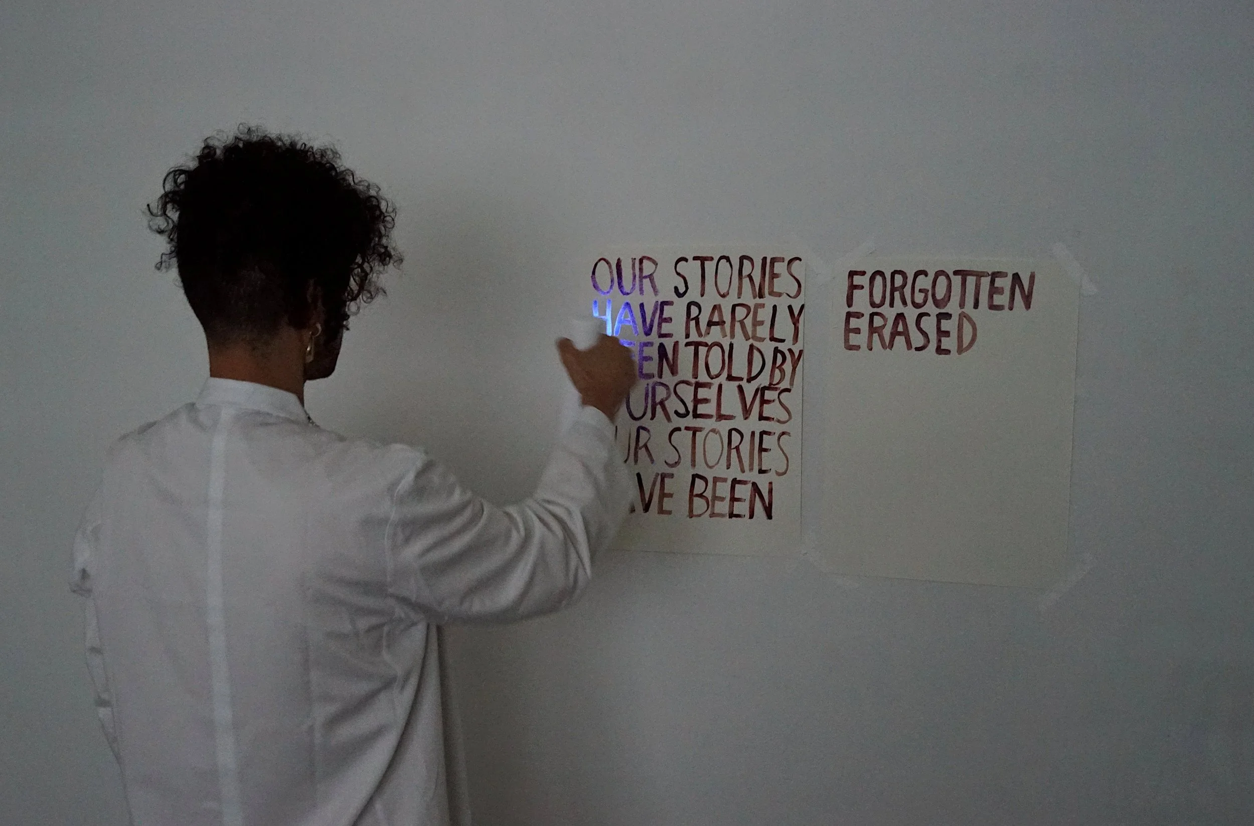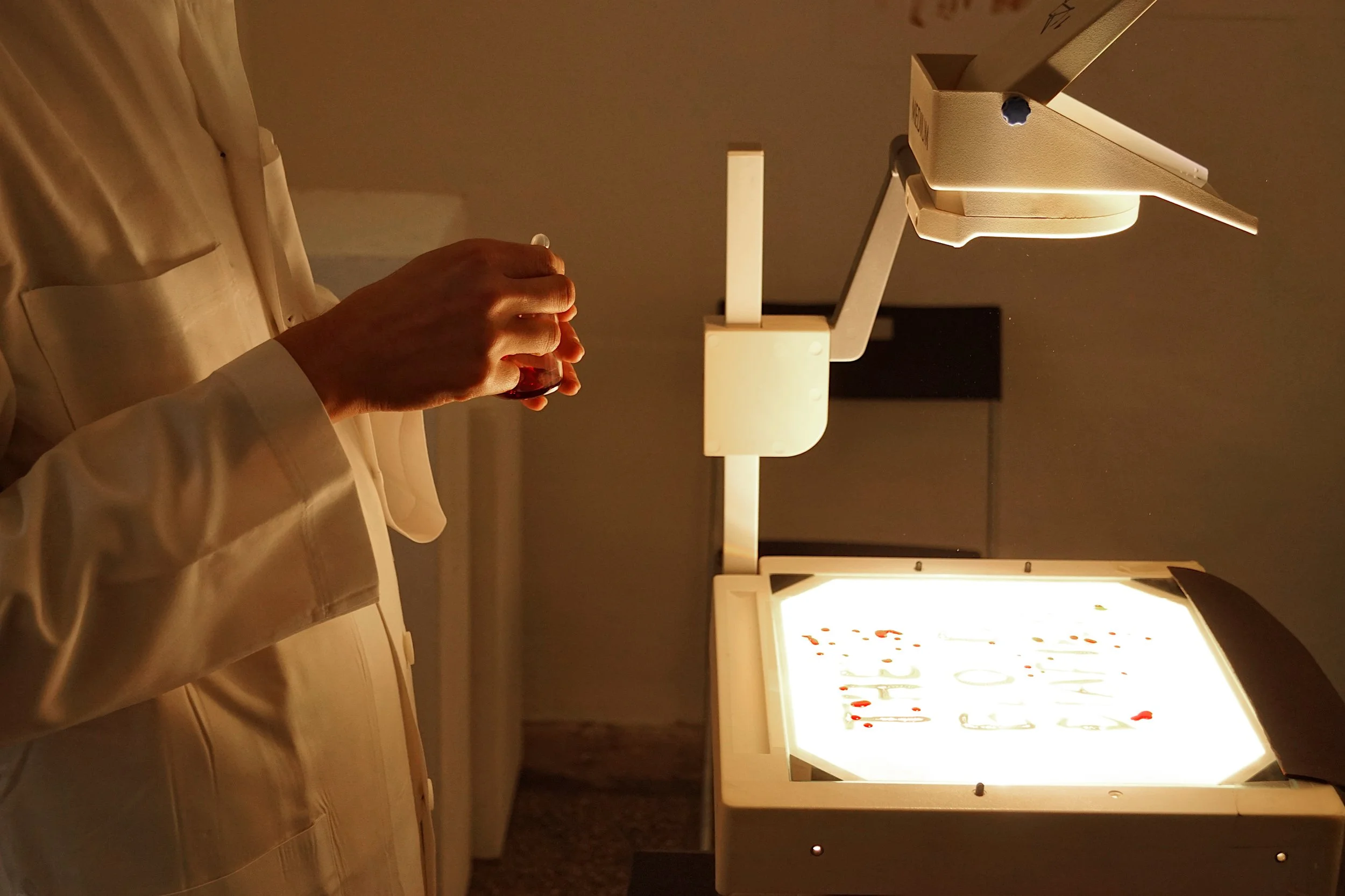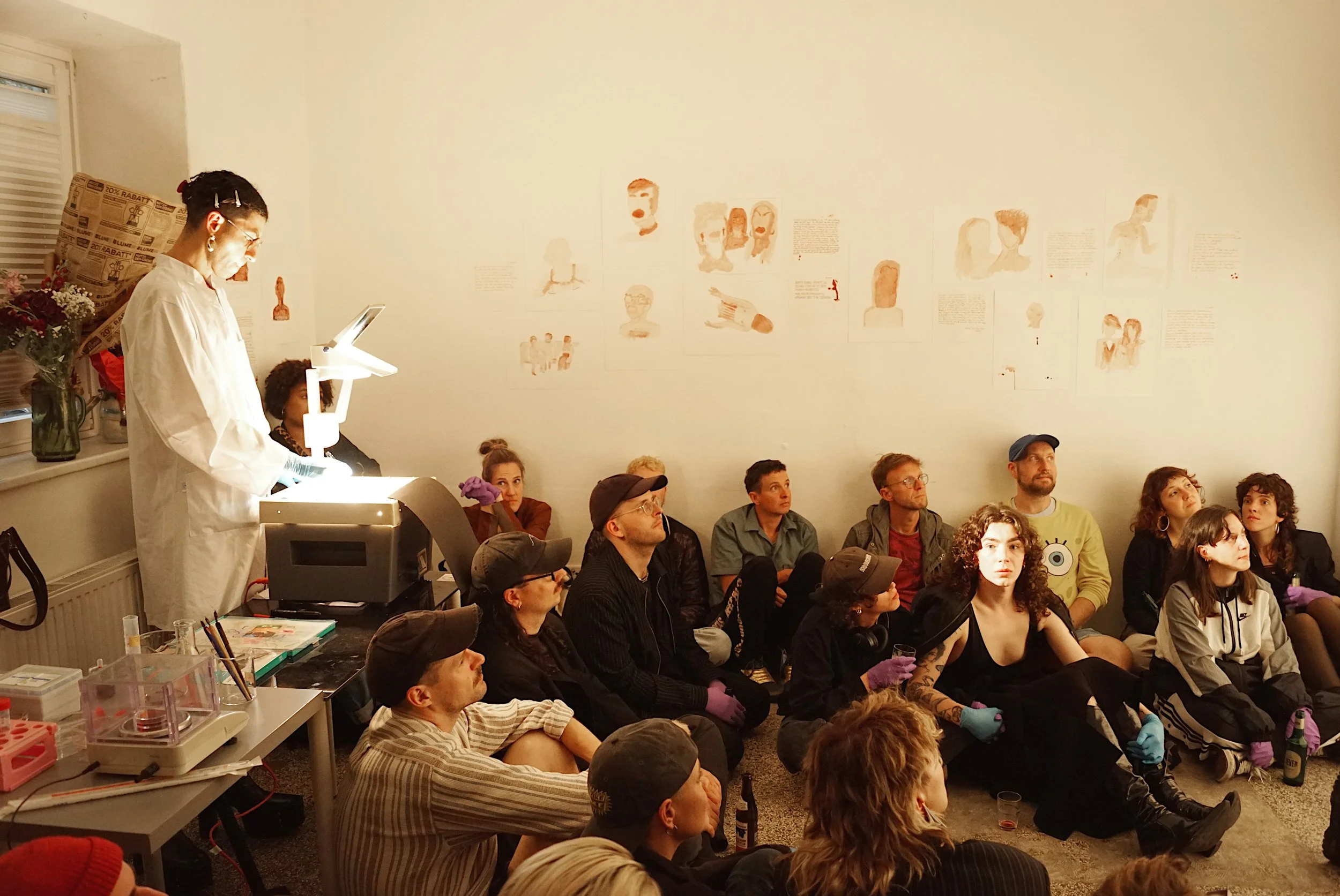 In der Ausstellung „THE BLOOD DIARIES” geht es um die Chroniken des Malariaerregers, eines Parasiten, der sich im Blut entwickelt und vermehrt. Diese Geschichten werden in einem Forschungslabor gesammelt, dokumentiert und in einer Performance einem Publikum erzählt. Die Chroniken dienen dabei als Metapher für die Lebensbedingungen marginalisierter Gruppen.