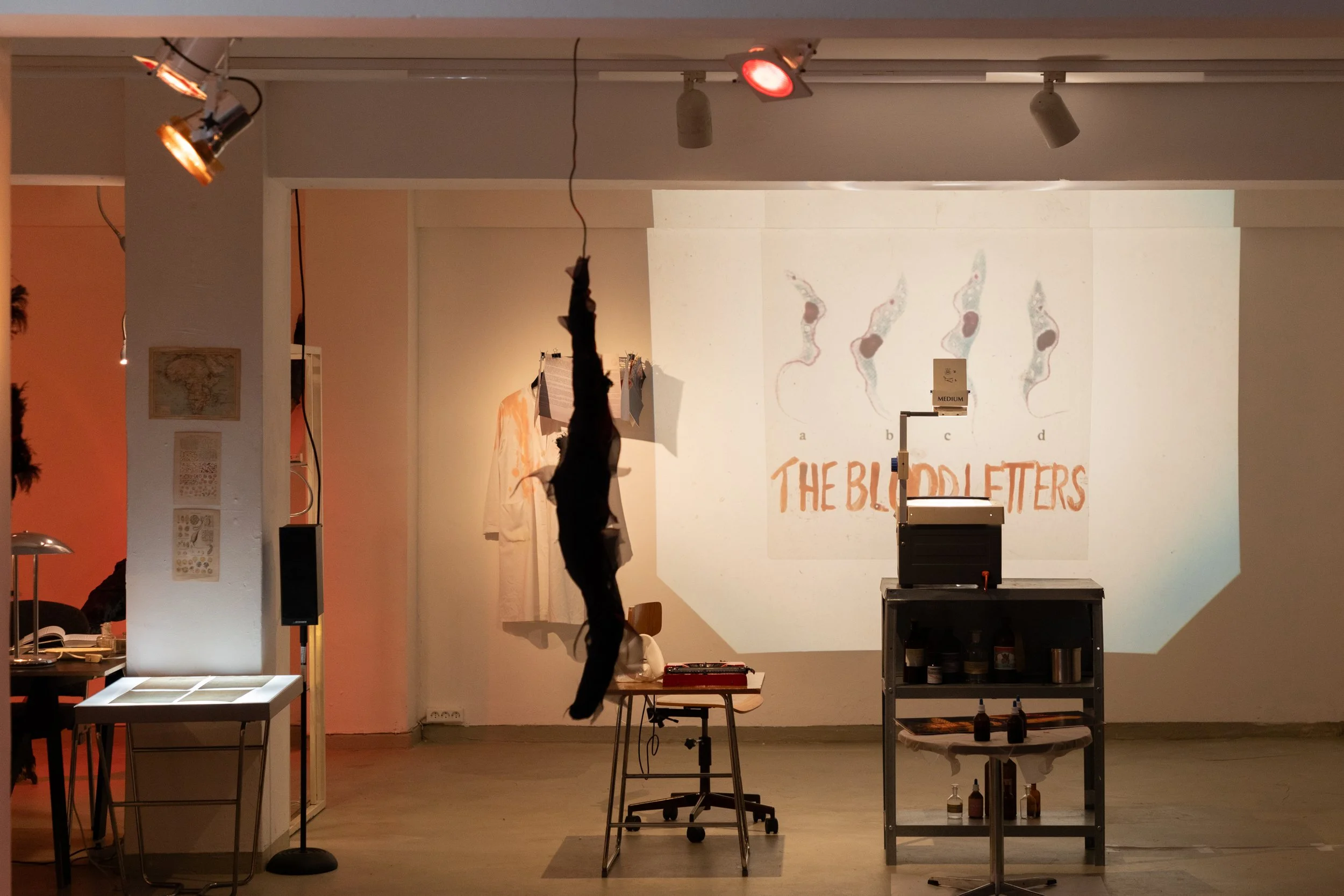 the blood letters is a performative, immersive exhibition in which a scientific team examines and deciphers the correspondence between blood parasites and humans in a research laboratory.